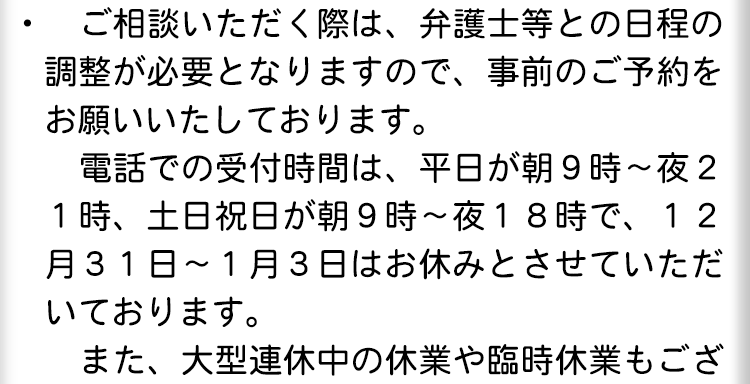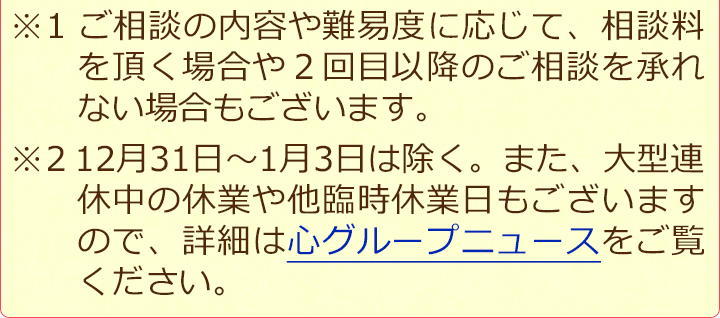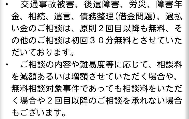 より多くの皆様に気軽にご相談いただけるよう、相談料は原則無料となっています。