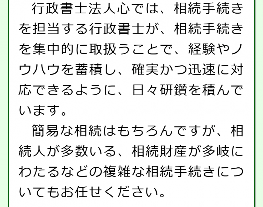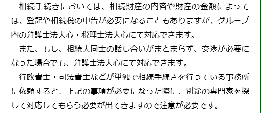 また、当法人は、グループ法人である弁護士法人心や税理士法人心と連携していますので、遺産の分け方について相談をしたいときや、相続税の申告が必要なときでも安心です。
