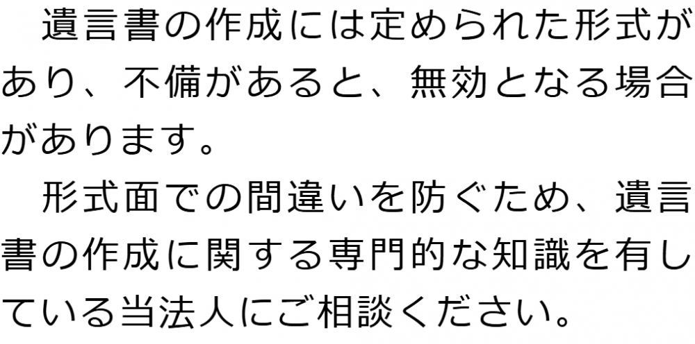 トップ業務内容遺言 階層構造▼ 業務内容(目次) 遺言 業務内容(目次)業務内容トップ行政書士法人心の業務内容遺言遺産整理相続人調査相続財産調査遺産分割協議書の作成預金・貯金の解約・名義変更証券口座の解約・名義変更自動車の名義変更心グループのその他の業務内容家族信託・民事信託節税対策事業承継遺言の検認相続放棄限定承認遺産分割遺留分侵害額請求相続登記相続税申告相続税調査 受付時間 平日 9時~21時、土日祝 9時~18時 夜間・土日祝の相談も対応します (要予約) 所在地 〒601-8003 京都府京都市南区東九条西山王町11白川ビルⅡ4F 0120-2403-39 お問合せ・アクセス・地図