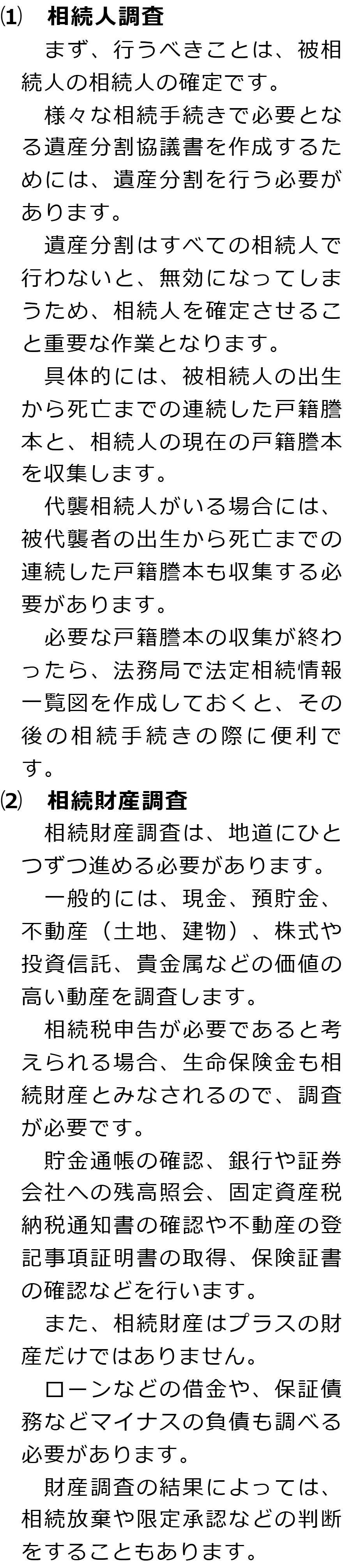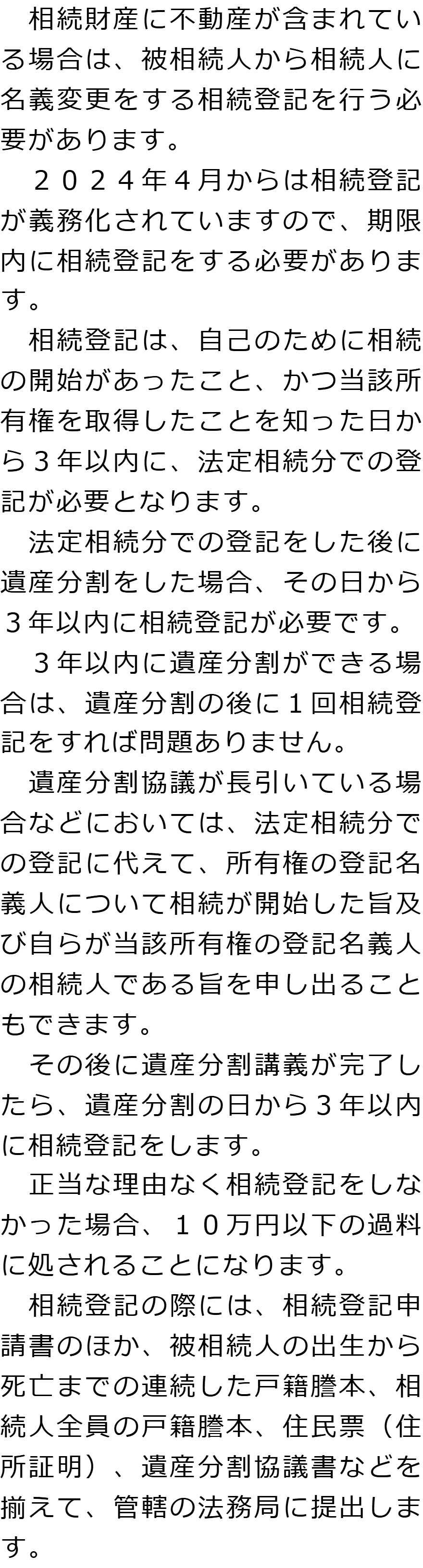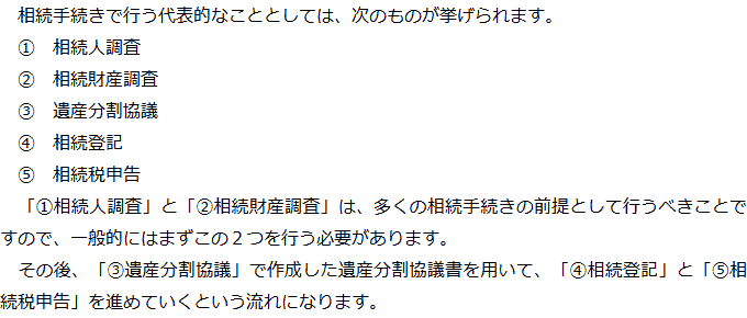 相続手続きの必要事項に関するQ&AQ相続手続きでは何をする必要がありますか?Q相続人調査と相続財産調査では何をする必要がありますか?Q遺産分割では何が必要ですか?Q相続登記はどのような場合に必要ですか?Q相続税申告はどのような場合に必要ですか? Q相続手続きでは何をする必要がありますか?AQ相続人調査と相続財産調査では何をする必要がありますか?AQ遺産分割では何が必要ですか?AQ相続登記はどのような場合に必要ですか?AQ相続税申告はどのような場合に必要ですか?A Q&A(目次)Q&Aトップ相続手続きの必要事項に関するQ&A 受付時間 平日 9時~21時、土日祝 9時~18時 夜間・土日祝の相談も対応します (要予約) 所在地 〒601-8003 京都府京都市南区東九条西山王町11白川ビルⅡ4F 0120-2403-39 お問合せ・アクセス・地図