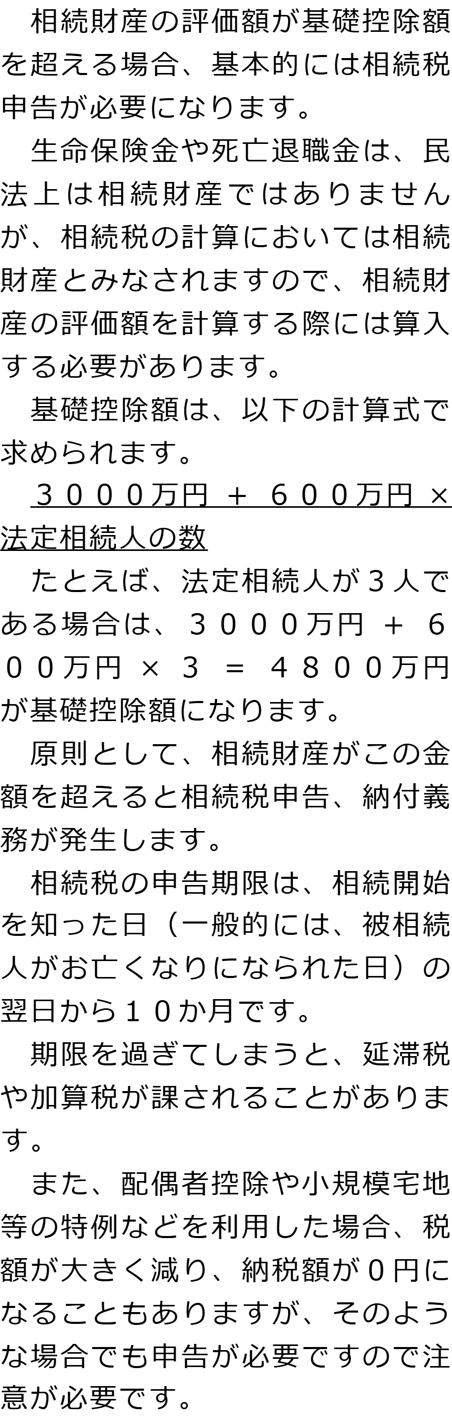 Q相続税申告はどのような場合に必要ですか?A Q&A(目次)Q&Aトップ相続手続きの必要事項に関するQ&A 受付時間 平日 9時~21時、土日祝 9時~18時 夜間・土日祝の相談も対応します (要予約) 所在地 〒601-8003 京都府京都市南区東九条西山王町11白川ビルⅡ4F 0120-2403-39 お問合せ・アクセス・地図