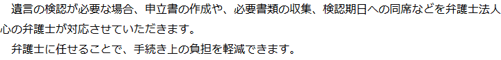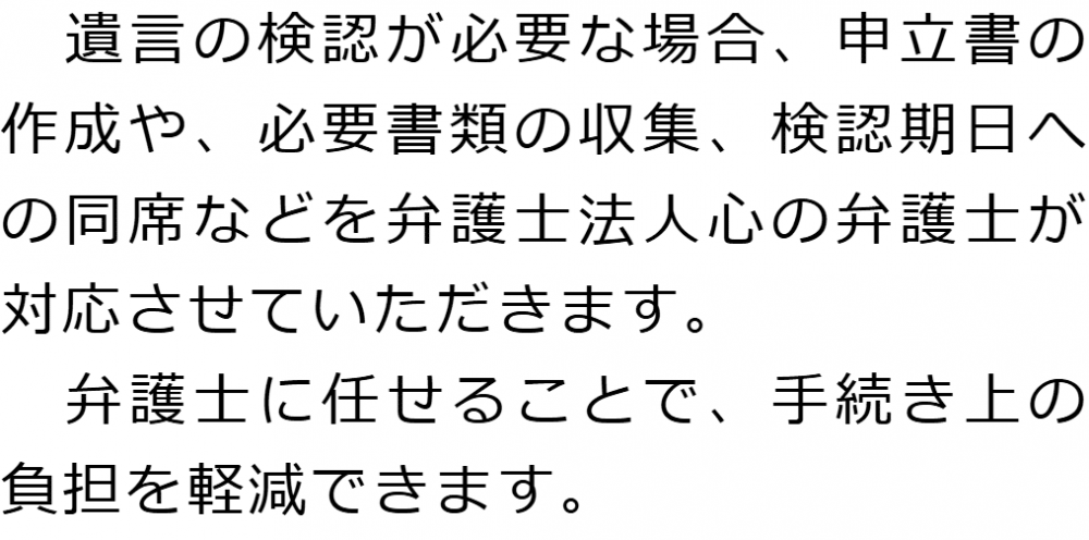 トップ業務内容遺言の検認 階層構造▼ 業務内容(目次) 遺言の検認 業務内容(目次)業務内容トップ行政書士法人心の業務内容遺言遺産整理相続人調査相続財産調査遺産分割協議書の作成預金・貯金の解約・名義変更証券口座の解約・名義変更自動車の名義変更心グループのその他の業務内容家族信託・民事信託節税対策事業承継遺言の検認相続放棄限定承認遺産分割遺留分侵害額請求相続登記相続税申告相続税調査 受付時間 平日 9時~21時、土日祝 9時~18時 夜間・土日祝の相談も対応します (要予約) 所在地 〒601-8003 京都府京都市南区東九条西山王町11白川ビルⅡ4F 0120-2403-39 お問合せ・アクセス・地図
