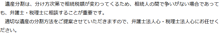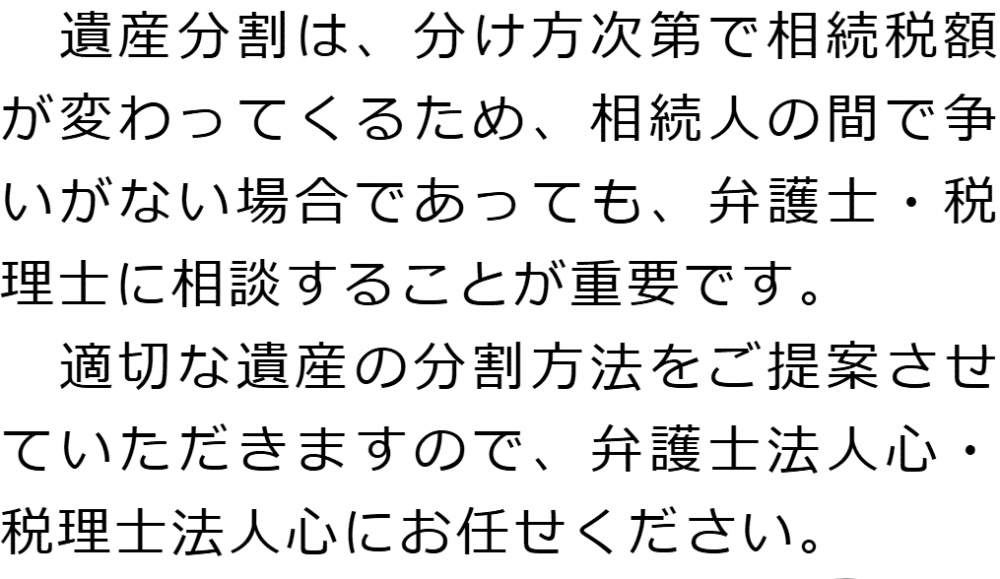 トップ業務内容遺産分割 階層構造▼ 業務内容(目次) 遺産分割 業務内容(目次)業務内容トップ行政書士法人心の業務内容遺言遺産整理相続人調査相続財産調査遺産分割協議書の作成預金・貯金の解約・名義変更証券口座の解約・名義変更自動車の名義変更心グループのその他の業務内容家族信託・民事信託節税対策事業承継遺言の検認相続放棄限定承認遺産分割遺留分侵害額請求相続登記相続税申告相続税調査 受付時間 平日 9時~21時、土日祝 9時~18時 夜間・土日祝の相談も対応します (要予約) 所在地 〒601-8003 京都府京都市南区東九条西山王町11白川ビルⅡ4F 0120-2403-39 お問合せ・アクセス・地図