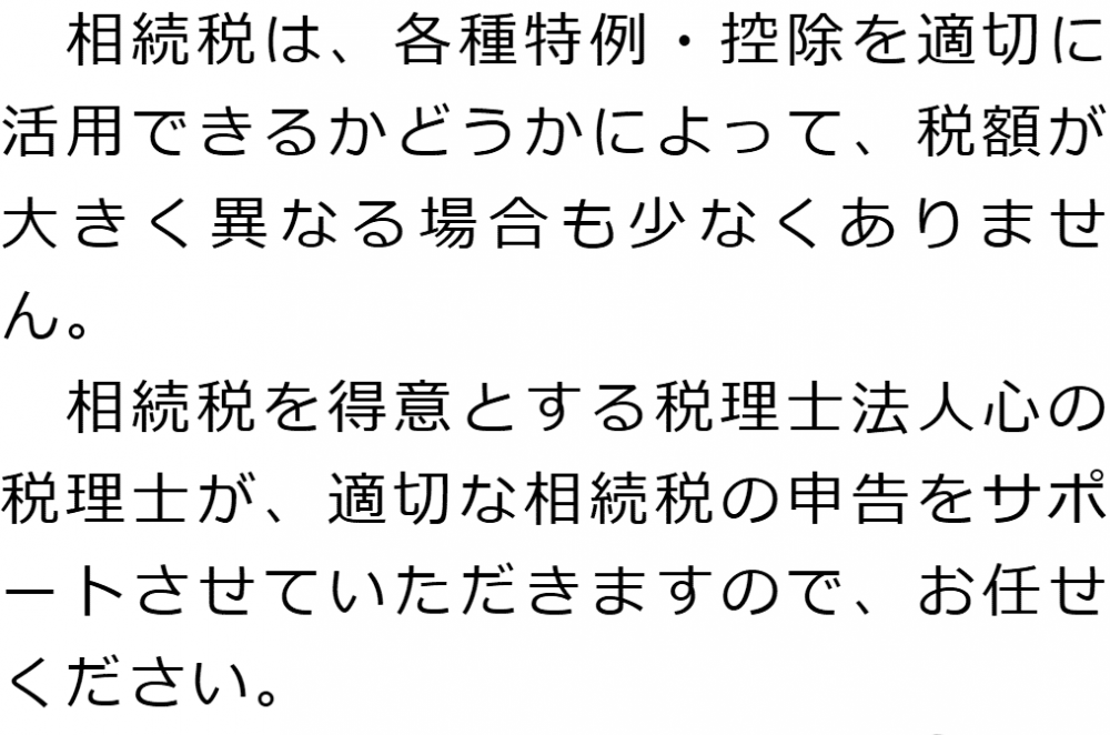 トップ業務内容相続税申告 階層構造▼ 業務内容(目次) 相続税申告 業務内容(目次)業務内容トップ行政書士法人心の業務内容遺言遺産整理相続人調査相続財産調査遺産分割協議書の作成預金・貯金の解約・名義変更証券口座の解約・名義変更自動車の名義変更心グループのその他の業務内容家族信託・民事信託節税対策事業承継遺言の検認相続放棄限定承認遺産分割遺留分侵害額請求相続登記相続税申告相続税調査 受付時間 平日 9時~21時、土日祝 9時~18時 夜間・土日祝の相談も対応します (要予約) 所在地 〒601-8003 京都府京都市南区東九条西山王町11白川ビルⅡ4F 0120-2403-39 お問合せ・アクセス・地図